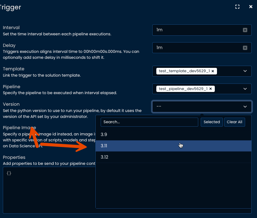 Within a trigger or an experiment on UI, you can now select a version. If no version selected, the system will use the default version (3.9 for environment pre-existing 11.3 and 3.12 for newly environment)