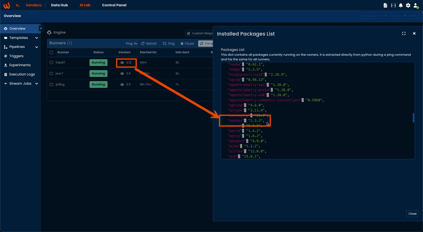 To check versions available in your app, please navigate to AI Lab and look at the overview. If you don't find the versions you aim to use, please contact our team.