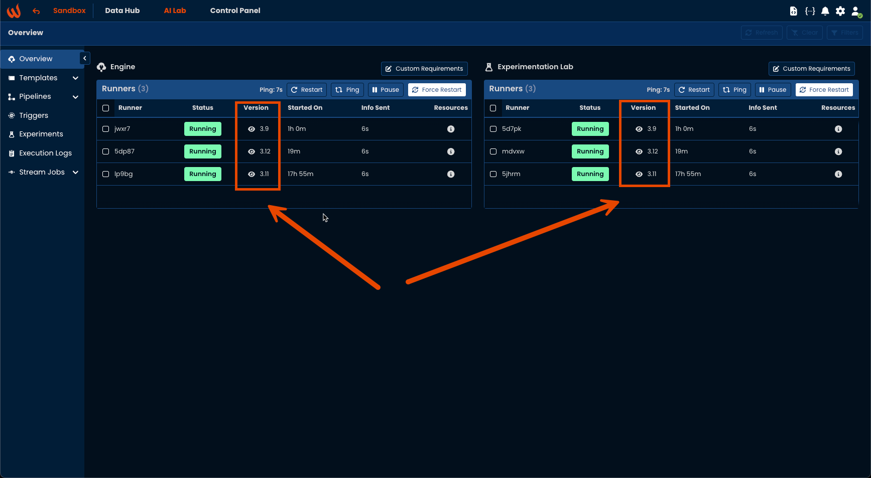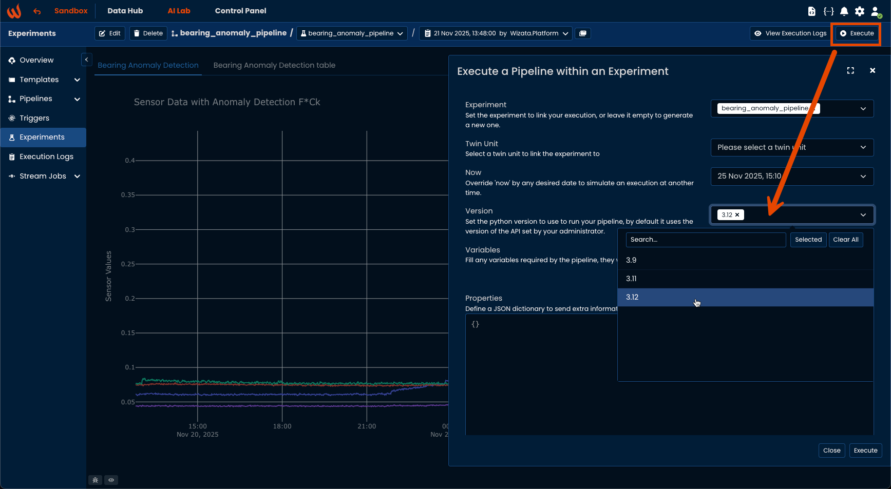 When executing an experiment with UI you can now select the environment on which to run the experiment - if not specified it will use a default version which depends on your platform.